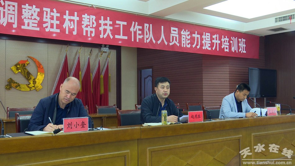 秦州区融媒体中心5月25日讯(记者李博)5月22日,秦州区召开新增派驻村扶贫工作队员岗前培训会。秦州区委常委、组织部长赵虎生参加会议并讲话。