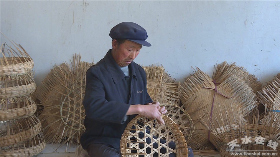 灵巧的双手下几根竹篾飞快地交织,不一会儿,一个竹篮的底座已经成形了,竹编技艺在秦州区大门镇关峡村代代相传,但由于传统竹编款式的落后、销量萎缩、曾面临失传。镇上为了带动村民致富,2014年成立了润生竹编工艺农民专业合作社,由原来简单的工具型竹编,向工艺型转换,通过电商推介,产品供不应求。