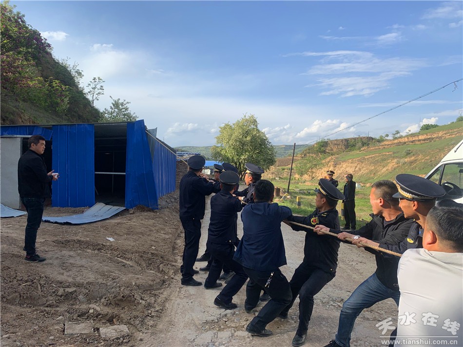 秦州区融媒体中心5月15日讯 为加强国土资源管理,严格保护耕地,严厉打击违法用地、违章建筑行为。秦州区玉泉镇加大对违法用地、违章建筑行为的巡查力度,对违法建筑进行强制拆除,起到良好震慑作用。