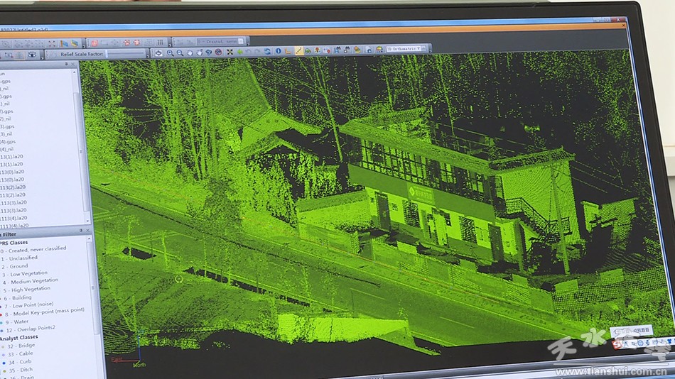 天水三和数码测绘院总工芦君成说,“目前我们发展的现在倾斜式测量,它对三维的数据整体从外延采集到加工到数据处理包括它的属性,它都属于在内业一条龙,全部都加载起来的。”