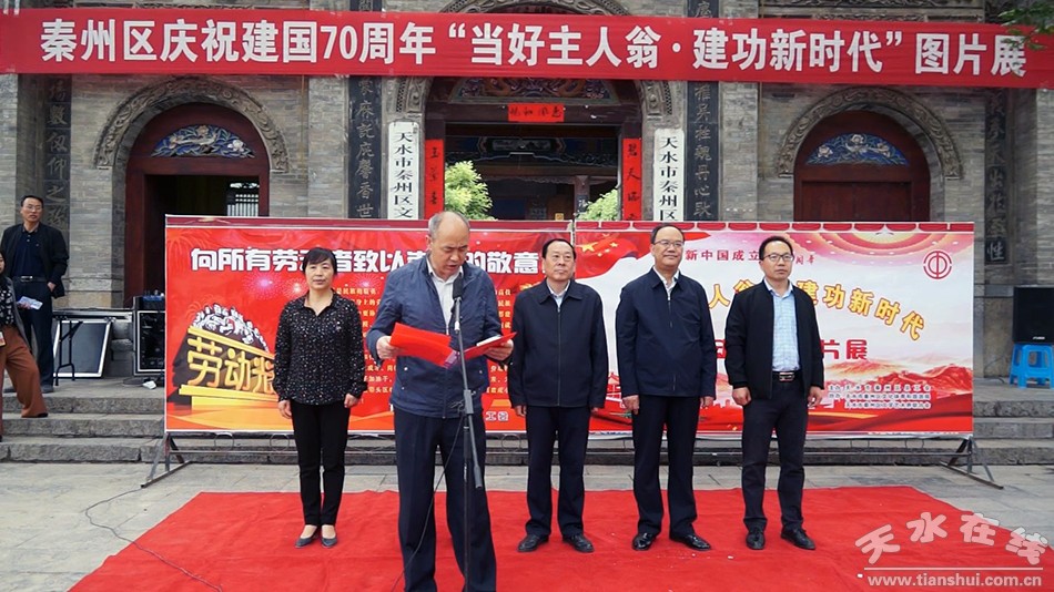 秦州区融媒体中心(记者武喜喜)5月1日讯4月30日,秦州区举办庆祝新中国成立70周年“当好主人翁·建功新时代”图片展。市总工会党组书记、常务副主席郭世文,秦州区领导王永刚、伏承祥、郭金霞参加活动。