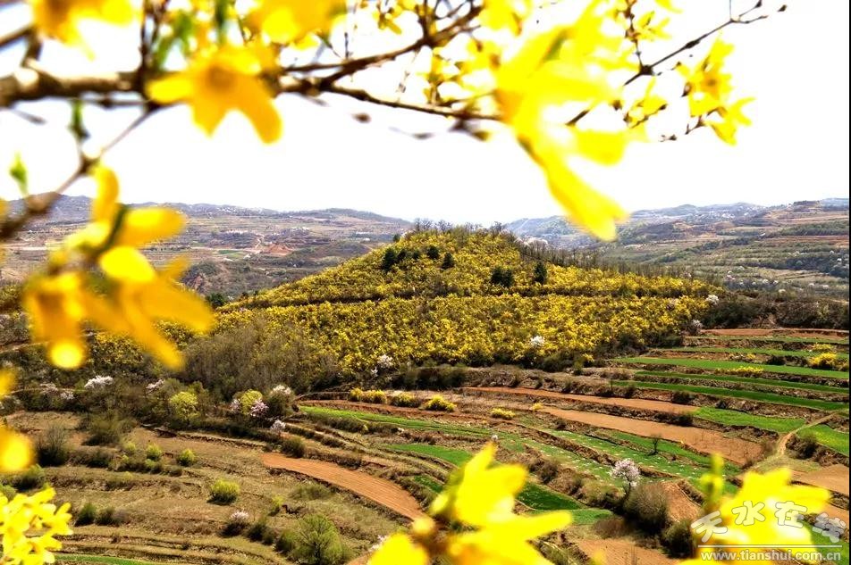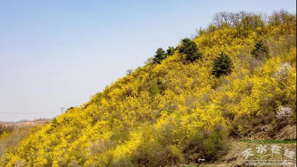 日前,天水市秦州区秦岭镇石家河村漫山连翘花盛开,给春日的秦州大地增添了一抹亮色,吸引众多游客踏青赏花。