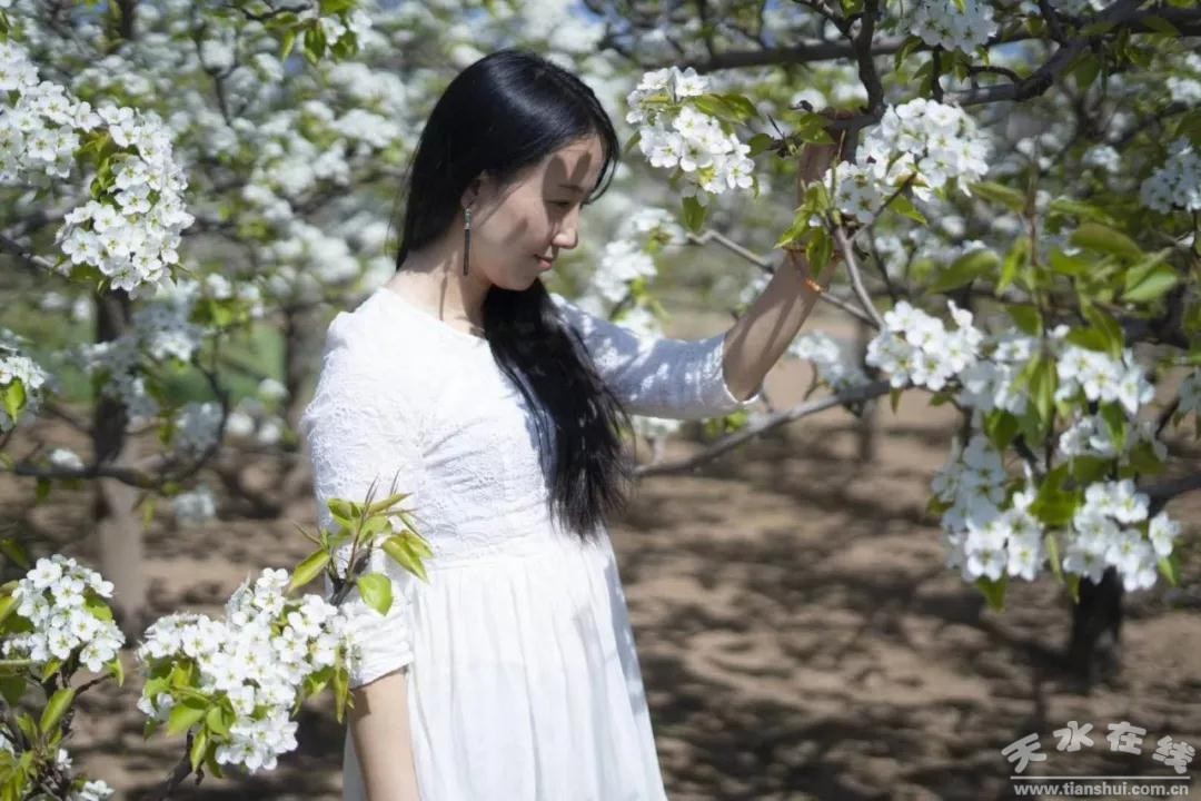 4月11日,一名游客在秦州区秦岭镇的樱桃林中游玩。(秦州区摄影家协会孙喜春摄)