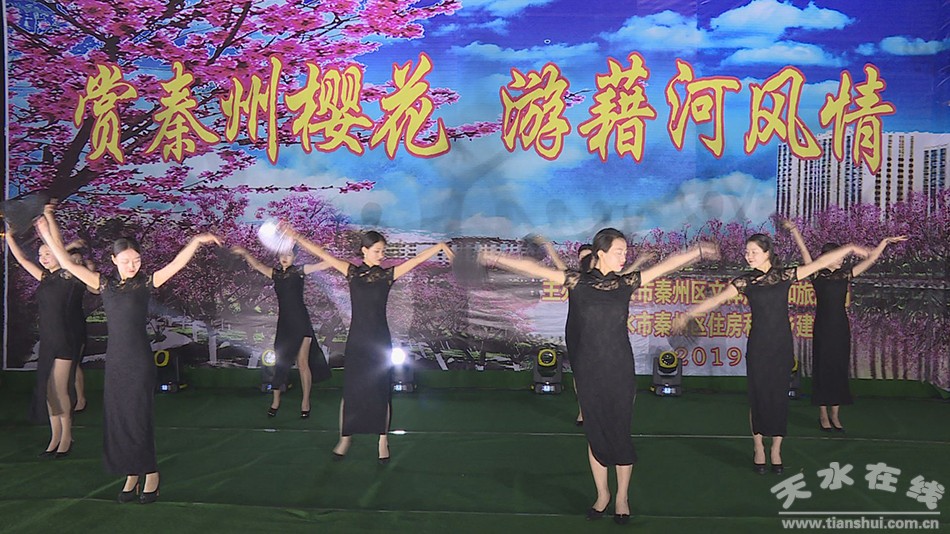 夜晚的秦州,樱花璀璨,香气迷人。晚上八点半,文艺表演在盛开的樱花树下拉开帷幕。歌曲《有一个叫龙城的地方》、《田野的春天》,舞蹈《九儿》、《芳华》等一个个精彩节目轮番上演。