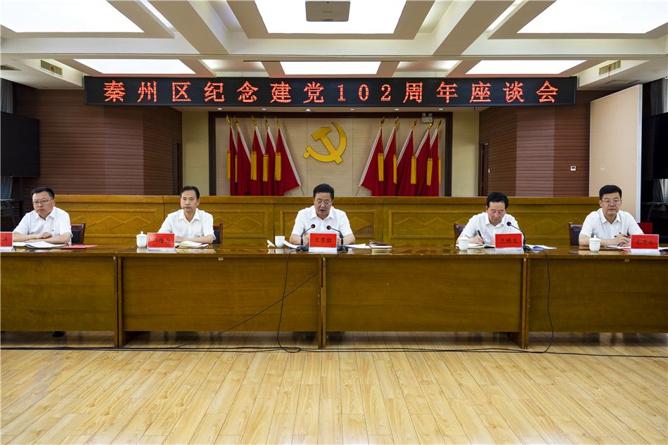 秦州区融媒体中心6月26日讯(记者 邵千 杨文慧)6月26日,秦州区召开纪念建党102周年座谈会,动员和激励全区各级党组织和广大党员干部进一步坚定理想信念、彰显时代担当、凝聚奋进力量,全力推动各项工作取得新业绩、再上新台阶。市委常委、秦州区委书记王东红出席会议并强调,要大力弘扬伟大建党精神,坚定信心决心,以更加有力的举措、更加明确的责任、更加优良的作风,凝心聚力,真抓实干,攻坚克难,奋力谱写奋进路上更加辉煌的篇章。