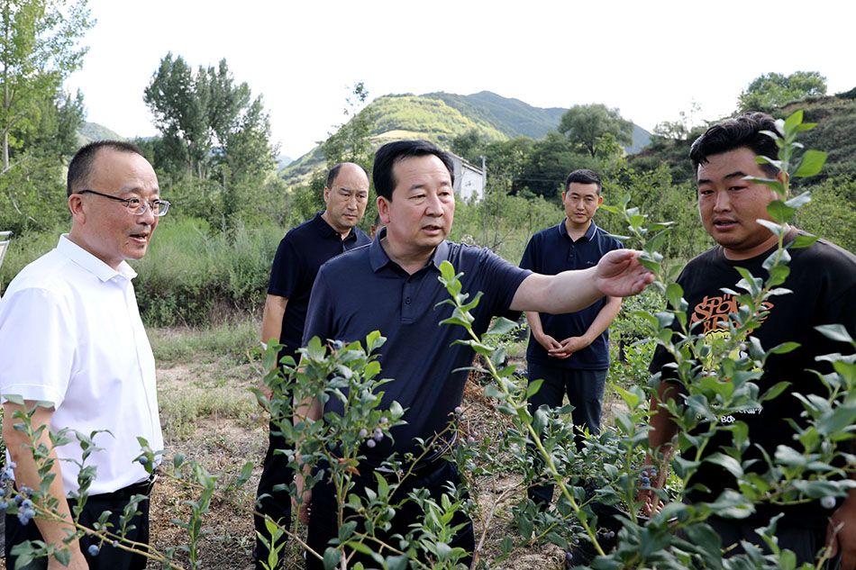 调研中,孟晓龙一行还来到关子镇岸峪村,详细了解蓝莓产业培育发展并查看种植基地设施化建设进展情况。他强调,要立足地域特色和资源禀赋,积极开展蓝莓新品种、新栽培方式的培育开发,加快蓝莓产业基地设施化建设进度,建立完善联农带农工作机制和“产供销”产业链条,加大产品推介和品牌宣传,着力构建现代农业产业体系,进一步提升特色农业产业科技支撑水平,持续推进农业增效、农村发展、农民增收。