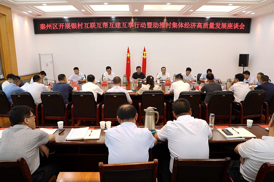 秦州区融媒体中心8月16日讯(记者 邵千)8月16日,秦州区召开银村互联互帮互建互享行动暨助推村集体经济高质量发展座谈会。市委常委、区委书记王东红,人行天水市中心支行行长周俊才出席会议并讲话。区委副书记、区长孟晓龙主持会议。