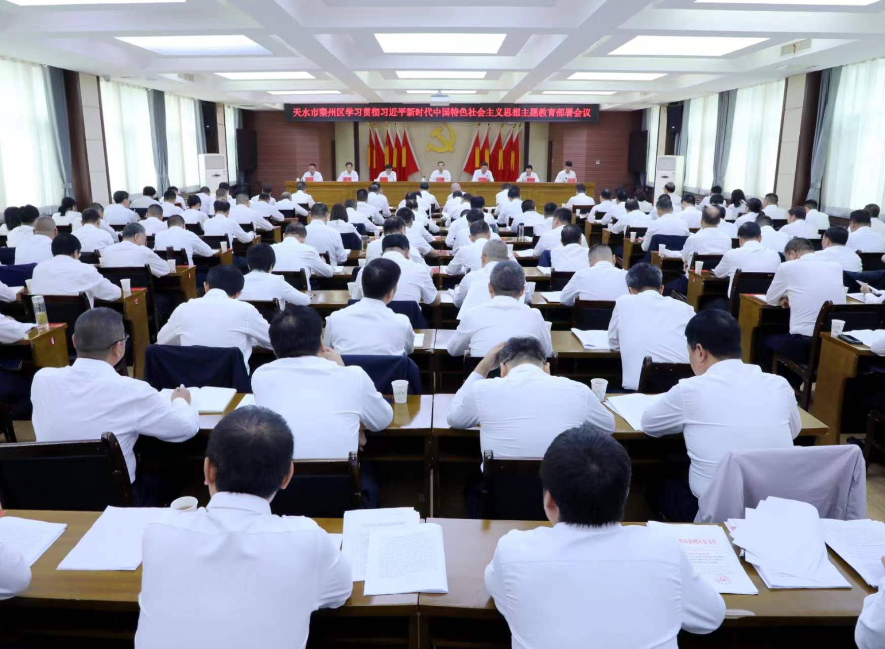 秦州区融媒体中心9月18日讯(记者 邵千)9月18日,全区学习贯彻习近平新时代中国特色社会主义思想主题教育部署会议召开,市委常委、秦州区委书记、区委主题教育领导小组组长王东红出席并讲话。他强调,要深入学习贯彻习近平总书记关于主题教育系列重要讲话和重要指示批示精神,认真贯彻落实党中央和省、市委关于主题教育的部署要求,紧扣“学思想、强党性、重实践、建新功”总要求,以饱满的政治热情,扎实的工作作风,把主题教育组织好、开展好,为全面建设社会主义现代化幸福美好新秦州提供坚强保证。