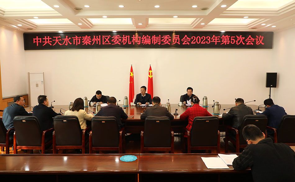 会议专题学习了中央组织部副部长、中央编办主任李小新同志专题党课报告《深入学习贯彻习近平总书记在中央编委第一次会议上重要讲话精神 坚定捍卫“两个确立” 坚决做到“两个维护”》及《甘肃省机构编制信息公开办法》《省委编办关于进一步严格市县事业编制管理的通知》;研究审定了部分机构编制调整、部门(单位)“三定”规定、2023年区级部门(单位)项目人员择优入编登记、秦州区2022年度公开选聘专职化村党组织书记入编等事宜。