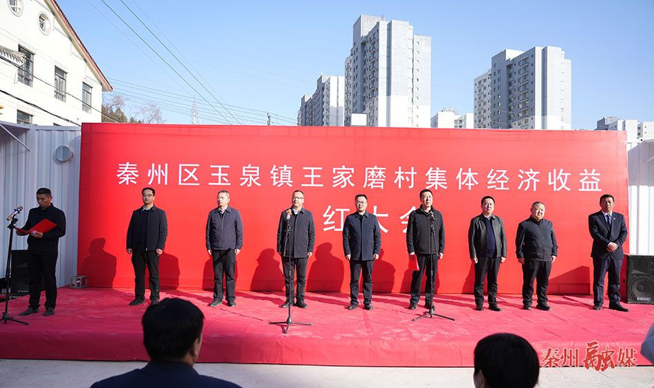 秦州区融媒体中心12月8日讯 (记者 刘武锋 党文曦)12月7日,玉泉镇王家磨村举行集体经济收益分红大会。区委常委、组织部部长张强,区委常委、玉泉镇党委书记刘晓宏,副区长卢军明出席活动。