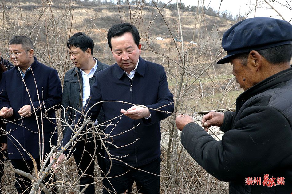 孟晓龙一行来到太京镇靳家崖村市、区联动义务植树点,详细了解土地类型及面积、地块平整等情况,实地查看土壤墒情、道路疏通、用水储备、苗木调运等相关情况,并就全面做好今年市、区联动义务植树筹备工作进行再部署。