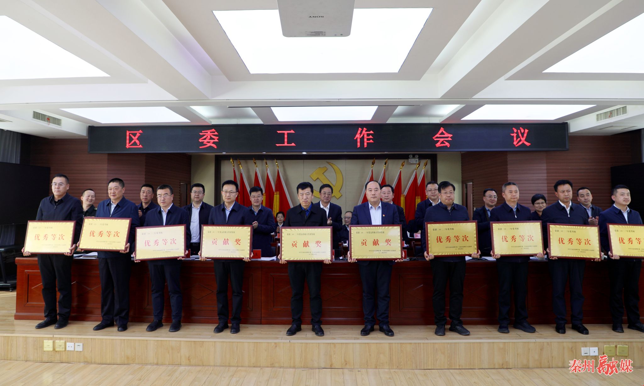 会议通报了2023年度区管领导班子和垂管单位考核等次,对获得“优秀”等次和支持地方经济发展贡献的单位颁发了奖牌。
