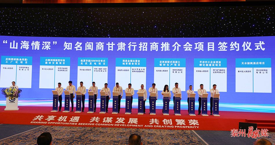 秦州区融媒体中心7月7日讯(记者 张继明 崔磊)7月6日至7日,第三十届兰洽会“山海情深”知名闽商甘肃行招商推介会和天水市特色优势产业招商推介会暨重点项目签约仪式在兰州举行。秦州区共签约招商引资项目12项,总投资76.8924亿元。
