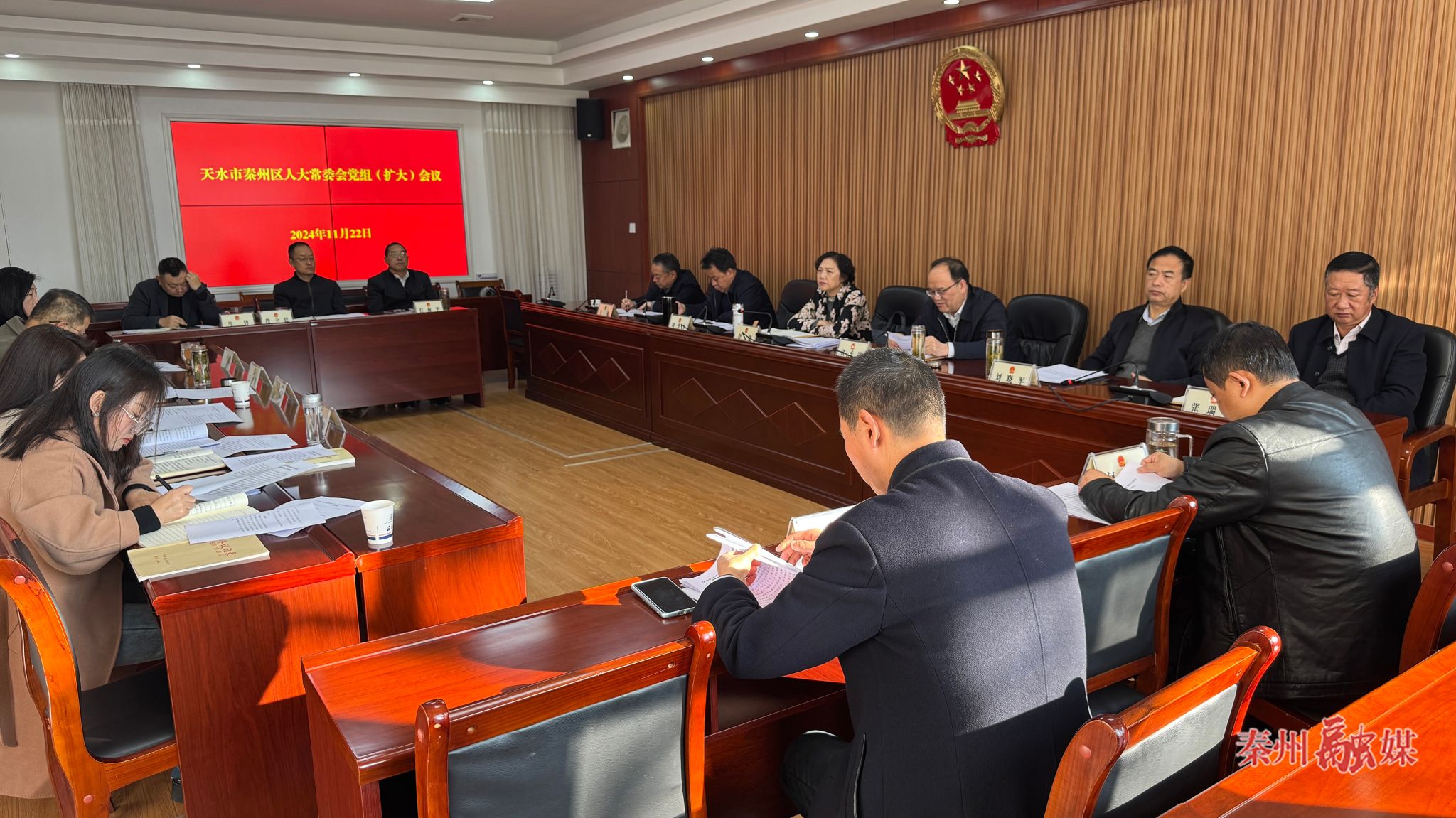 秦州区融媒体中心11月22日讯 (记者 赵婷)11月22日,秦州区人大常委会党组书记舒健主持召开区人大常委会党组(扩大)会议。区人大常委会党组副书记、副主任伏承祥,党组成员、副主任刘书文、刘晓军、王煊参加会议。各委办主任、副主任列席会议。