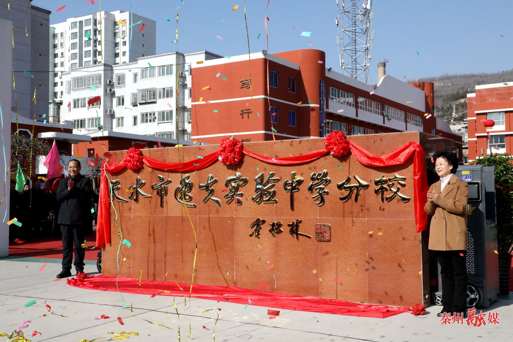 秦州区融媒体中心1月12日讯 (记者 邵千 高世飞)1月12日,天水市逸夫实验中学分校成立并举行揭牌仪式。市委常委、秦州区委书记康泰来,副市长汪小娟出席仪式并为天水市逸夫实验中学分校揭牌。市人大常委会副主任沈建玲、市政协副主席何宝平、市政府办公室副主任李逢春、市教育局局长杨瑞峰,区领导王志成、舒健、毛更生、胡小云、王欢、杨玲、魏志扬出席揭牌仪式。