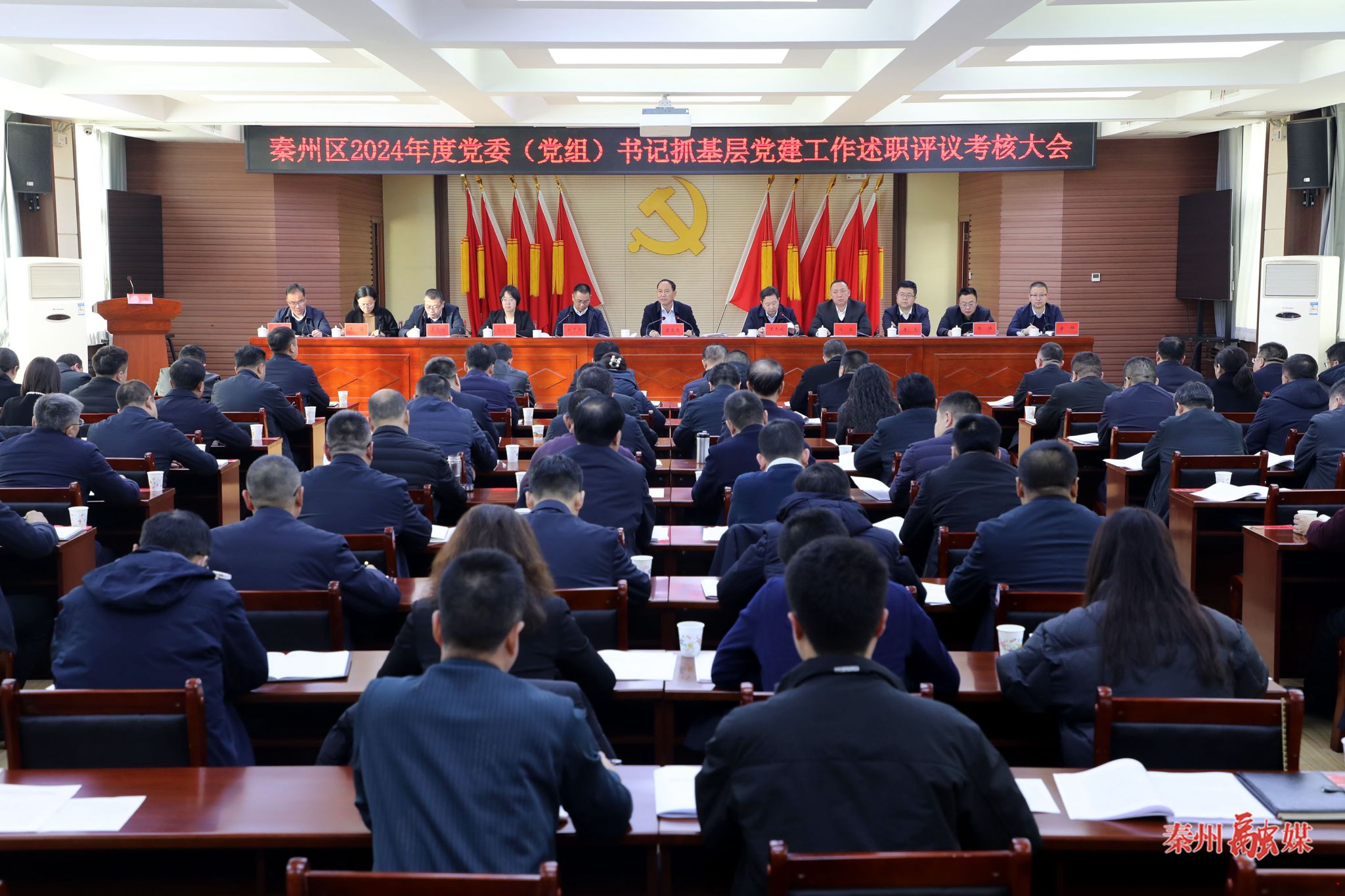 秦州区融媒体中心1月27日讯 (记者 邵千)1月26日,秦州区2024年度党委(党组)书记抓基层党建工作述职评议考核大会召开,市委常委、区委书记康泰来出席会议并讲话。他强调,要深入学习贯彻习近平总书记关于党的建设的重要思想,进一步压实工作责任,紧盯全区工作大局,更好发挥党的政治优势、组织优势,奋力推动基层党建工作提质增效,为扎实推进中国式现代化秦州实践提供坚强组织保障。
