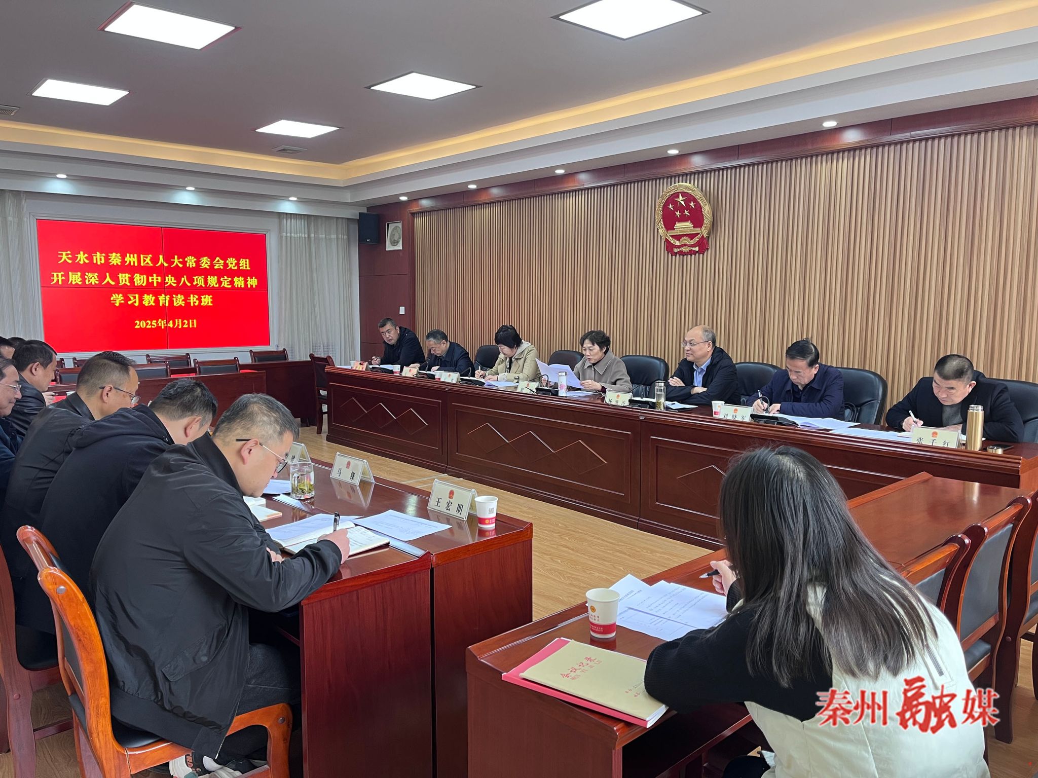 秦州区融媒体中心4月3日讯(记者 马鹏)4月2日,秦州区人大常委会党组开展深入贯彻中央八项规定精神学习教育读书班第一次集中学习。区人大常委会党组书记、主任舒健主持。