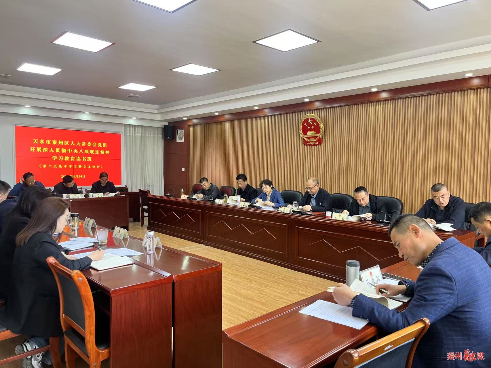 秦州区融媒体中心4月15日讯(记者 张敏)按照区委关于学习教育读书班的部署要求,4月14日,区人大常委会党组开展深入贯彻中央八项规定精神学习教育读书班第二次集中学习,认真学习《习近平关于加强党的作风建设论述摘编》第一至第三专题。部分区人大常委会党组成员围绕主题开展交流研讨。区人大常委会党组书记、主任舒健主持。