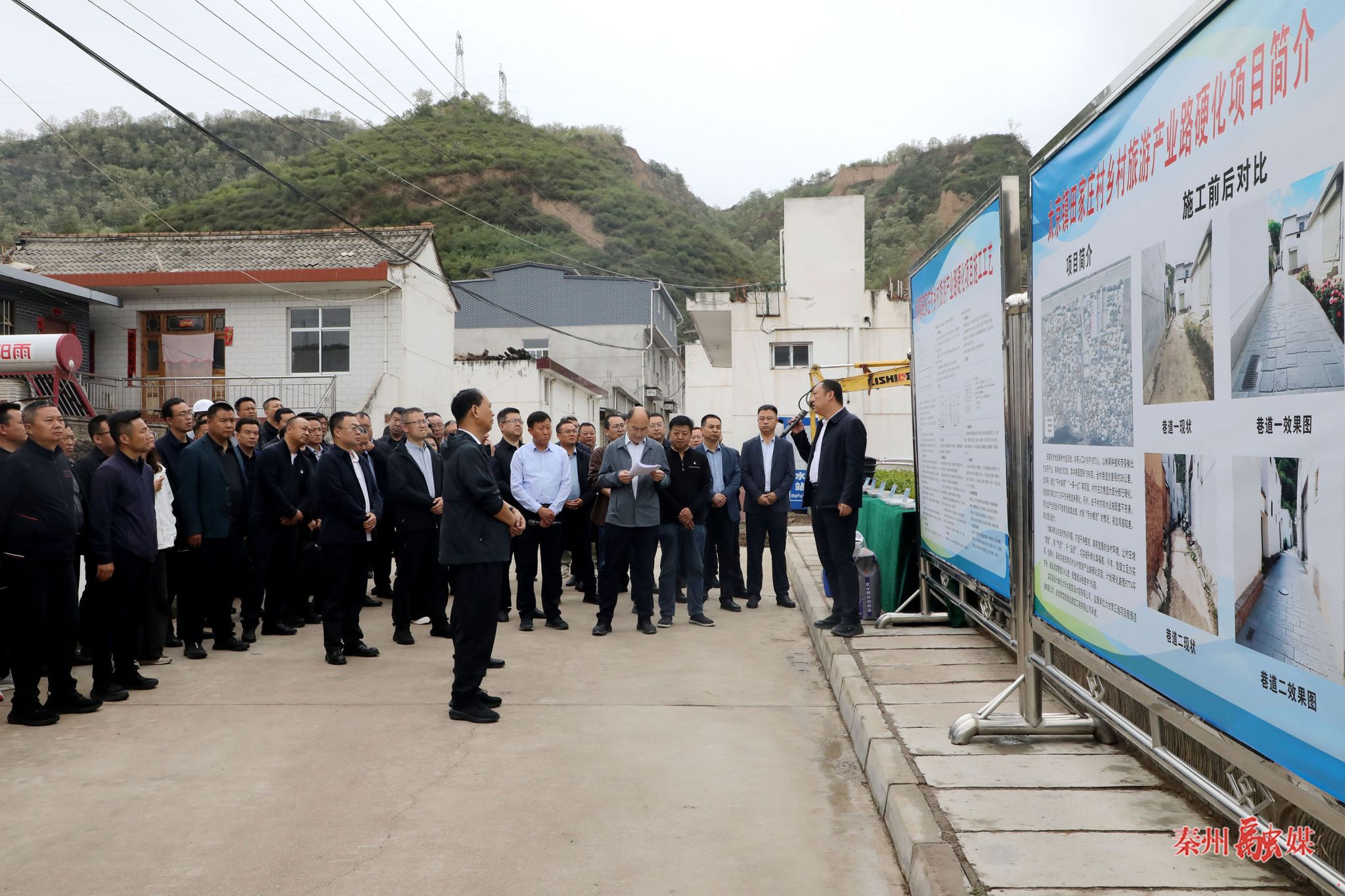 会前,在太京镇田家庄巷道硬化项目现场进行了培训。