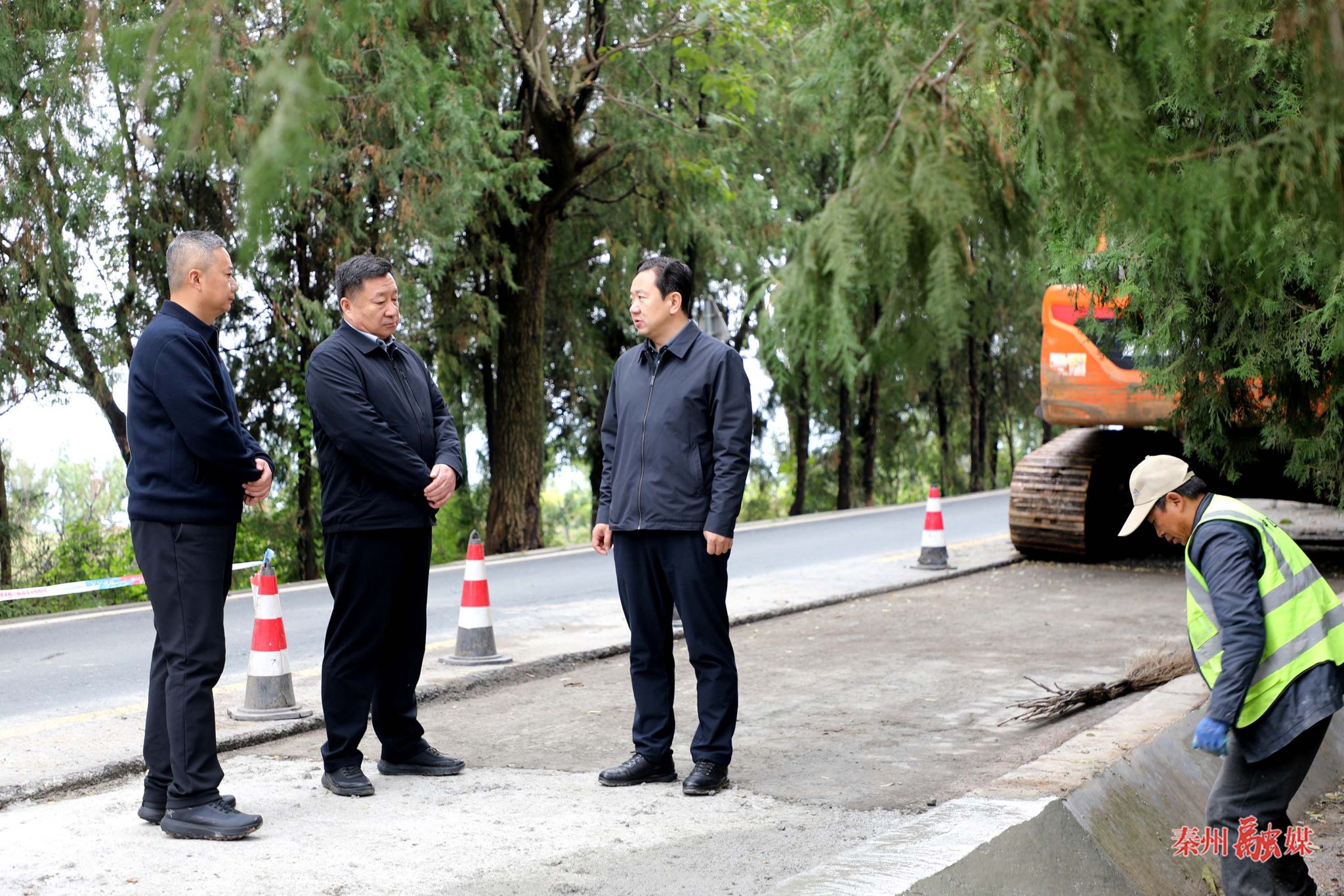 秦州区融媒体中心10月13日讯(记者 崔磊)近日,受长期降雨影响,秦州区部分镇出现道路塌陷、巷道受损、半幅路面网裂等情况。10月13日,秦州区委副书记、区长王志成带领区直有关部门负责人深入玉泉镇开展实地调研。他强调,要抢时间、补短板、强落实,以‘零伤亡’为底线,以项目治理为根本,用最快速度排查隐患、转移群众、修复设施,坚决守护群众生命财产安全。