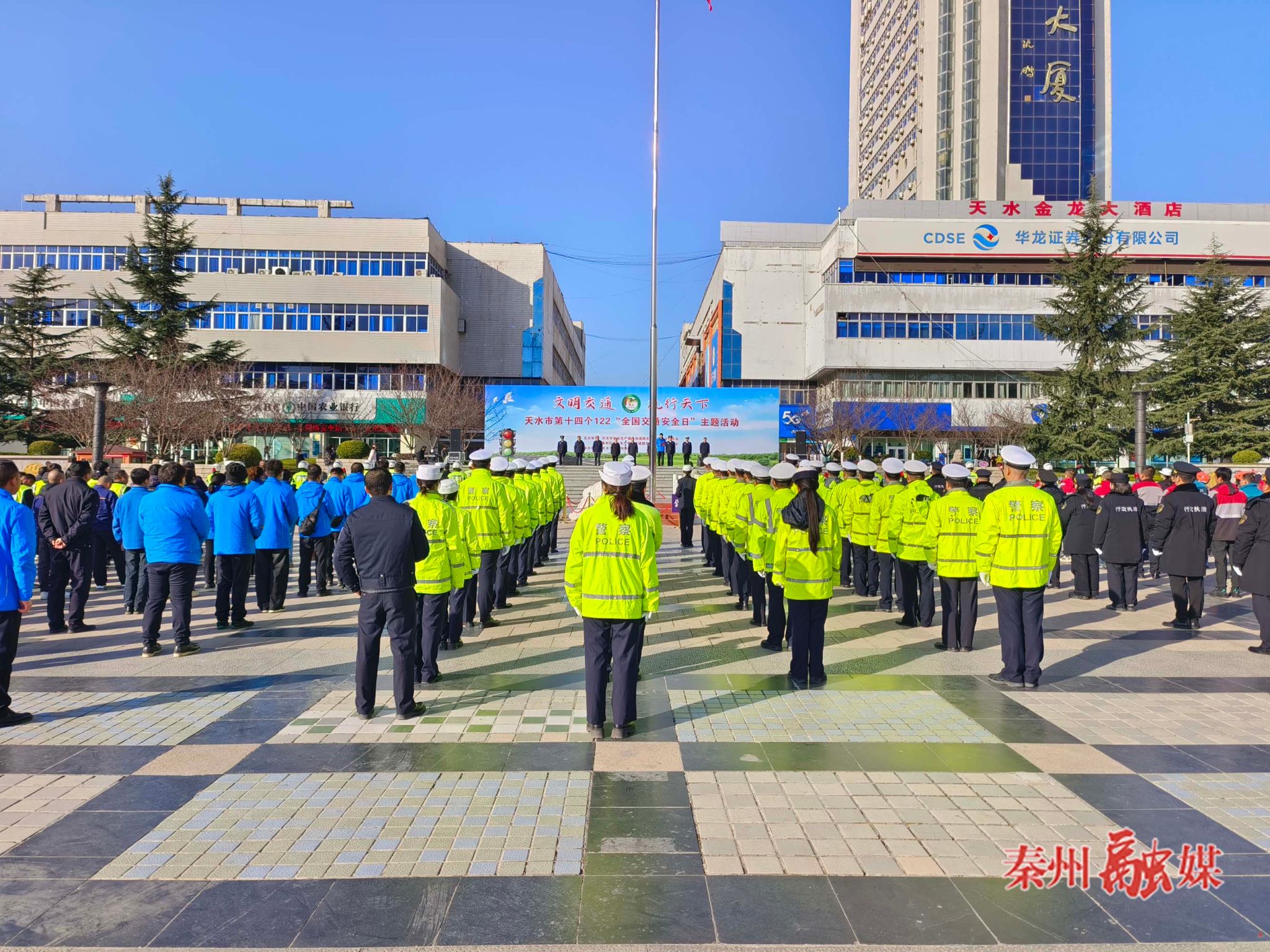 秦州区融媒体中心12月4日讯(记者 高世飞)12月2日,天水市以“文明交通、礼行天下”为主题的第十四个122“全国交通安全日”主题活动在秦州区龙城广场举行,活动旨在进一步增强广大群众的交通安全意识、法治意识和文明意识,营造人人遵守交通法规、文明参与交通的良好氛围。市委常委、政法委书记邵建斌出席活动并讲话。区委常委、政法委书记郭晓庆,区政府副区长、秦州公安分局局长刘四海参加活动。