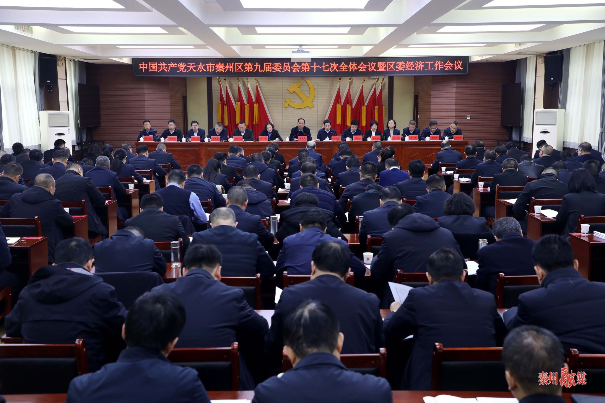 秦州区融媒体中心12月31日讯 (记者 邵千 崔磊 王歧)中国共产党天水市秦州区第九届委员会第十七次全体会议暨区委经济工作会议12月31日召开。会议深入学习贯彻党的二十届四中全会、中央经济工作会议精神,传达学习了省委十四届九次全会、省委经济工作会议精神和市委八届十二次全会暨市委经济工作会议精神,总结2025年工作,分析研判当前经济形势,部署明年及今后一个时期全区经济社会发展任务,动员全区上下坚定信心、振奋精神,凝心聚力谋发展、担当作为开新局,奋力谱写中国式现代化秦州实践新篇章。