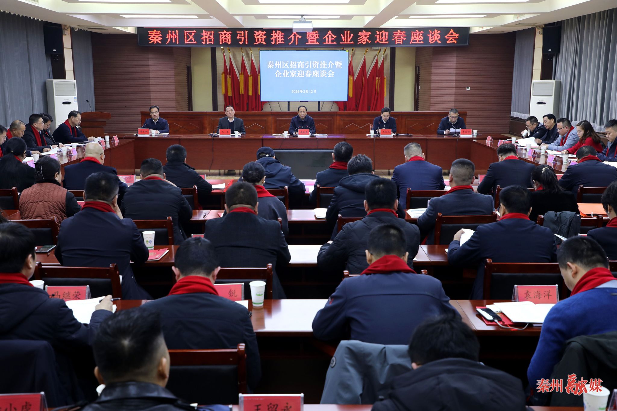 秦州区融媒体中心2月12日讯(记者 邵千)2月12日,秦州区招商引资推介暨企业家迎春座谈会举行,大家齐聚一堂,畅想未来、共话发展,切实架起政企“连心桥”,凝聚发展“向心力”。市委常委、区委书记康泰来出席并致辞。区委副书记、区长王志成主持,区级相关领导出席。