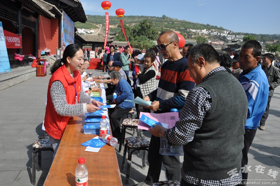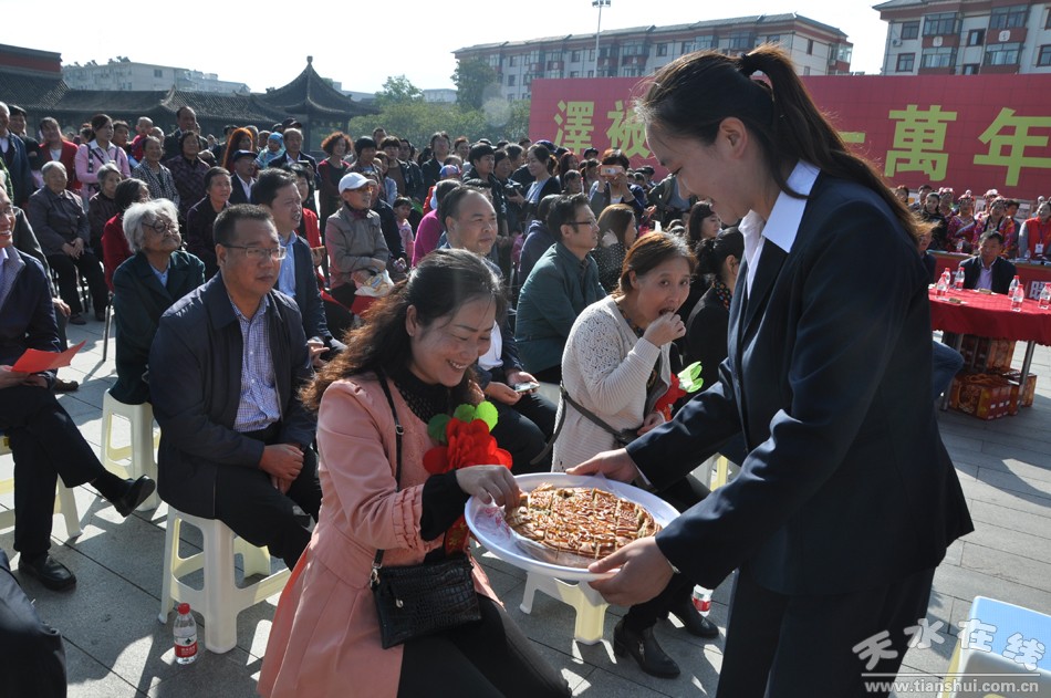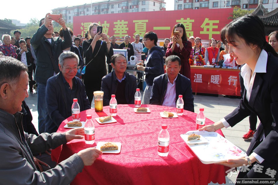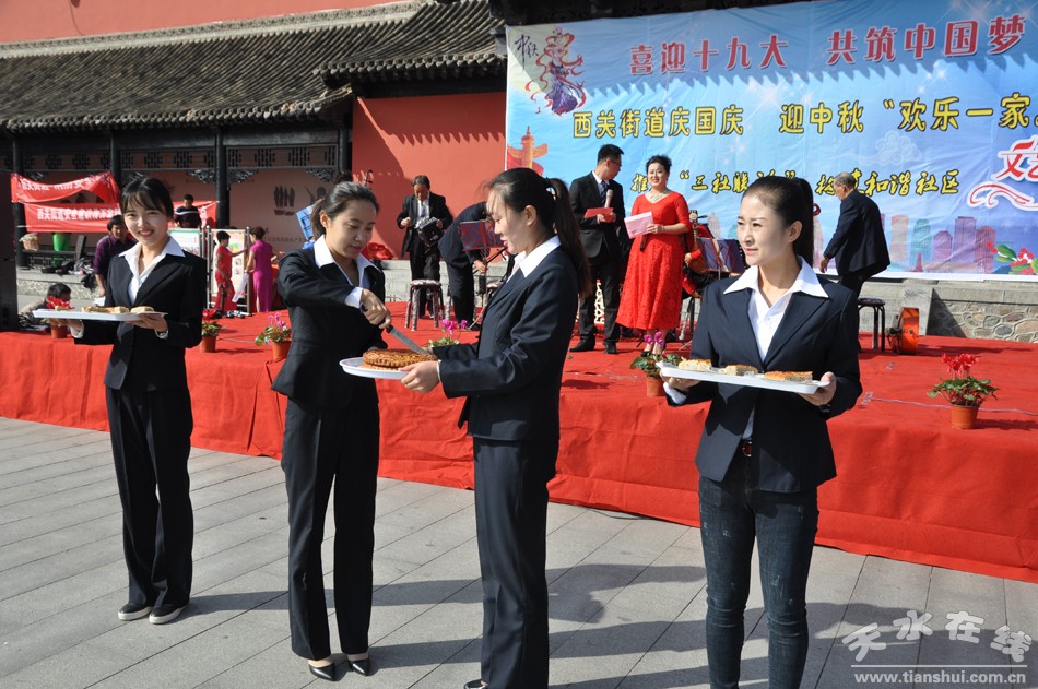 活动当天,在秦州古城伏羲广场早早的聚集了几百号人,又是发宣传资料,又是节目表演,好不热闹。两个大圆桌摆满了月饼,更是吸引了众多目光,引得人们纷纷驻足观看。