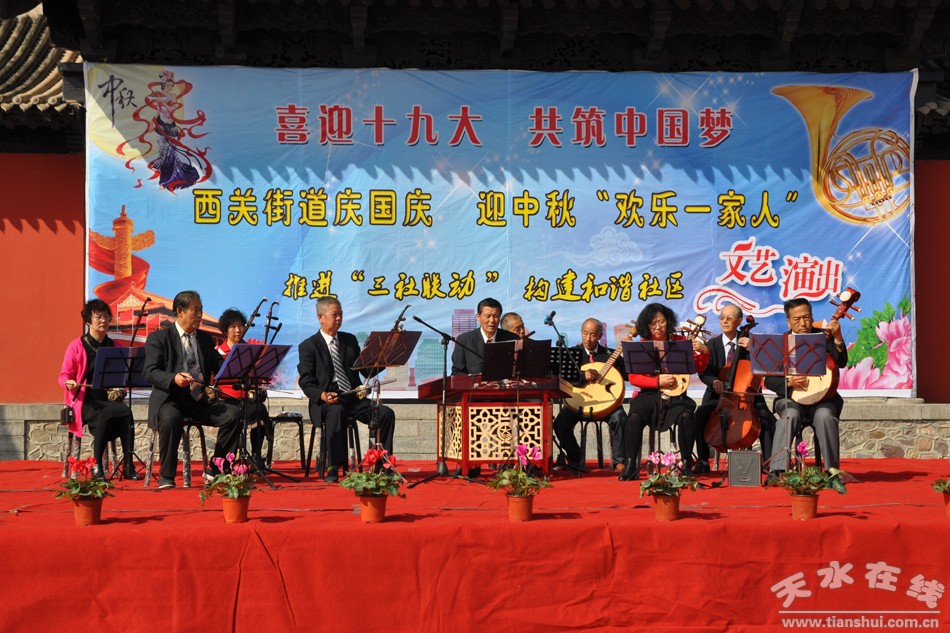 9月28日,西关街道“庆国庆·迎中秋欢乐一家人”文艺演出,干部群众载歌载舞喜迎党的十九大,社区邻里欢聚一堂共同庆祝国庆、中秋双节。