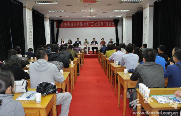 加强和完善城乡社区治理是党中央国务院今年为我们提出来的一个新的课题。“三社联动”是完成这项任务的一个全新的载体。西关街道紧跟形势,在培训过程中,邀请了天水市兰州大学社会学博士焦若水教授,天水市民间组织管理局局长刘万洲,天水市社会工作协会全国社会工作师民政局干部刘汝佳,西关街道自由路社区主任冯丽,精神病疗养院叶琛等不同层面的业内人士,精心安排了培训课程,培训内容,让参与试点的人员熟悉当前的政策,精通业务,懂工作,会工作。