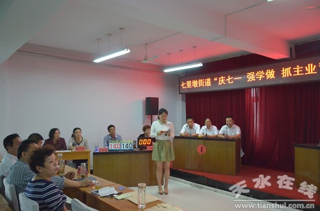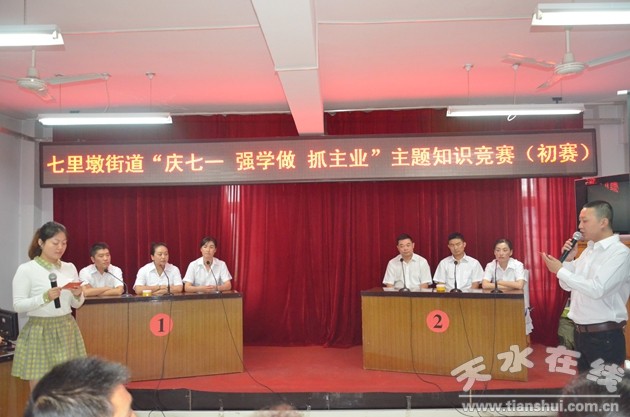 为迎接即将到来的“七一”建党节,结合“两学一做”学习教育活动,更好地提高街道党员干部学党章党规、学系列讲话、做合格党员的积极性,6月9日,七里墩街道举行“庆七一、强学做、抓主业”知识竞赛。竞赛队伍由各社区党组织、机关党支部等12支队伍组成。