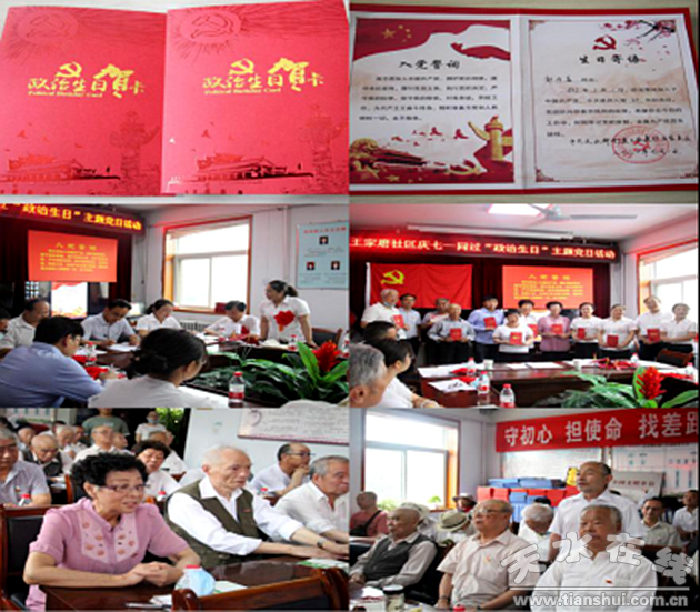 七月一日,王家磨社区开展了一场别开生面的“党员政治生日”主题党日活动,集体为入党时期相近的10名党员过“政治生日”,通过“五个一”环节增强仪式感,提醒党员时刻不忘身份、不忘初心、牢记使命。参加活动的有去年刚刚成为预备党员的新同志,也有党龄60多年的老党员,面对党旗,他们做出郑重承诺,要坚定理想信念,牢记初心使命,对党忠诚,永葆政治本色。