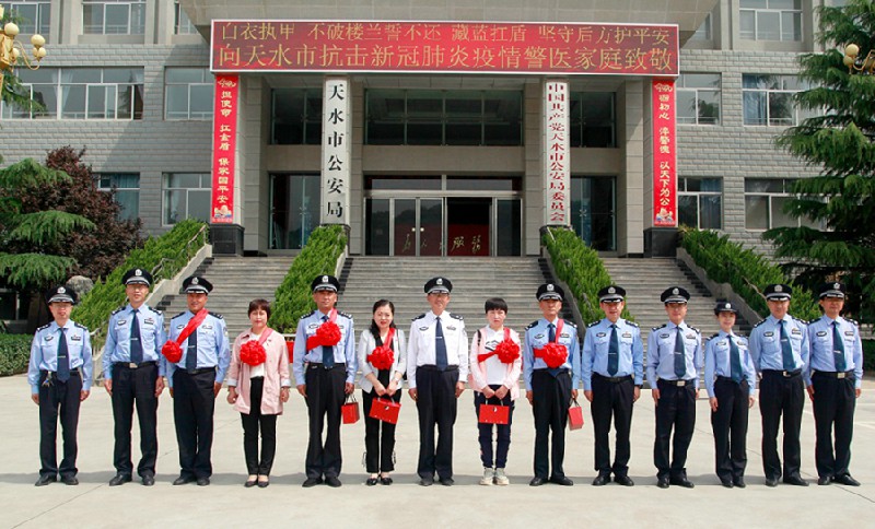 5月21日,天水市公安局召开抗击疫情警医家庭代表座谈会。副市长、市公安局局长马瑛出席座谈会,同3对抗击疫情警医家庭代表亲切交流,代表市公安局党委向他们表达了诚挚的敬意和衷心的感谢,并送上慰问品。