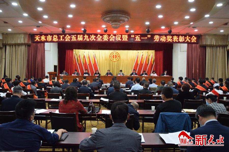 4月28日下午,天水市总工会五届九次全委会议暨“五一”劳动奖表彰大会在市迎宾馆召开。传达省总工会十二届六次全委会议精神,总结2019年工作,部署2020年工作任务,表彰荣获天水市五一劳动奖状、奖章、工人先锋号和五一巾帼奖的先进集体和先进个人。市委常委、组织部部长贾义翔,市政协副主席高媛瑾出席会议,市人大常委会副主任、市总工会主席王晓琴主持会议。