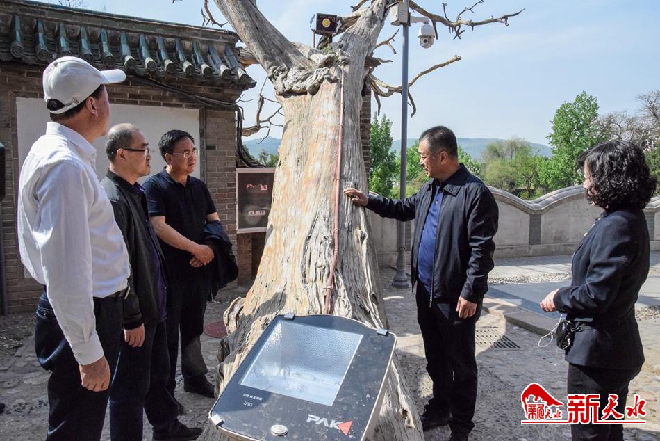 蒋晓强在调研中强调,天水拥有大量的古树名木资源,是活化石般的文物,它们既是天水被命名为历史文化名城的重要依据,也体现了天水厚重的历史文化底蕴,依法加强古树名木的保护管理对于提升天水历史文化名城影响力、推进生态文明建设、加快全国文明城市创建十分重要。各县区、有关部门要进一步提高加强古树名木保护工作重要性和紧迫性的认识,认真贯彻落实《天水市古树名木保护条例》,细化落实加固支撑、设置围栏、病虫防治、根系复壮、修建管护井等保护措施,加大管护力量和资金投入,切实做好古树名木养护和复壮工作,为其健康生长创造良好条件。特别要对长势较弱、濒临死亡的古树名木,根据其立地条件和生存现状,科学制定“一树一策”抢救修复方案,综合运用先进技术手段,确保能够健康存活、焕发生机。要扎实开展古树名木普查工作,深入排查摸底,统一建档挂牌,确保应统尽统、不漏一树。要正确处理保护古树名木与实施项目建设的关系,在旧城改造、河道治理、道路硬化等工程实施过程中,坚持古树名木优先保护原则,防止发生因工程实施造成古树名木损害损坏问题。要建立健全古树名木保护长效机制,探索开展古树名木认养活动,实行古树名木“门前三包”制度,加强古树名木周边乱排污水、倾倒垃圾等突出问题整治,严厉打击盗挖、收购倒卖古树名木等违法行为,实现日常化、动态化、规范化、法治化管理。要加大《天水市古树名木保护条例》宣传力度,引导教育群众增强保护意识,挖掘古树名木历史文化内涵,打造一批以观赏古树名木为主题的精品旅游线路,推动古树名木资源与文化旅游产业深度融合,助力全市经济持续健康发展。