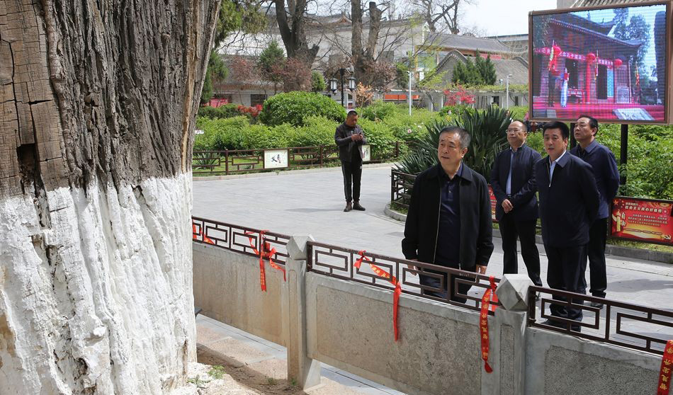 蒋晓强一行先后实地察看了秦州区藉口镇王家河村橡树、太京镇庞家沟村杨树,南郭寺侧柏、国槐、卫矛,中华西路步行街国槐,文庙国槐、侧柏,胡氏民居国槐等古树名木,详细了解了《天水市古树名木保护条例》实施情况,以及古树名木认定挂牌、建档立卡、日常管护、抢救复壮、经费保障等情况。