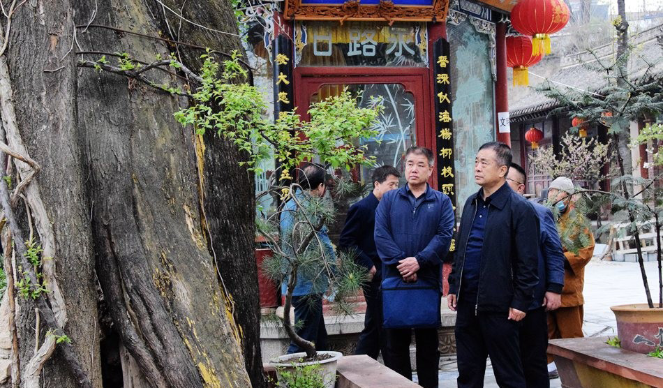 蒋晓强一行先后实地察看了麦积区马跑泉镇渗金寺侧柏,甘泉镇太平寺双玉兰、八槐村国槐和八股槐,麦积镇崇福寺侧柏、街子村国槐,党川镇龙包沟村红豆杉等古树名木,详细了解了《天水市古树名木保护条例》实施情况,以及古树名木认定挂牌、建档立卡、日常管护、抢救复壮、经费保障等情况,并就古树名木保护管理工作中存在的困难问题以及对策建议与区、镇和管护责任单位负责人进行了深入交流。