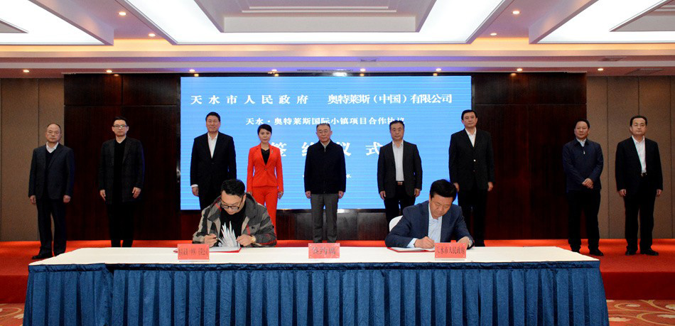 3月30日,天水市举行重大招商引资项目签约仪式,天水市国际品牌五星级酒店和天水•奥特莱斯国际小镇两个重大项目正式落地天水。市委书记王锐,市人大常委会主任蒋晓强,市委副书记、市长王军,市政协主席赵卫东,市委秘书长何吉洲,市政府秘书长王永祥;中深发展集团有限公司董事长郑倡琳、奥特莱斯(中国)有限公司投资发展执行总裁洪炜等出席签约仪式。