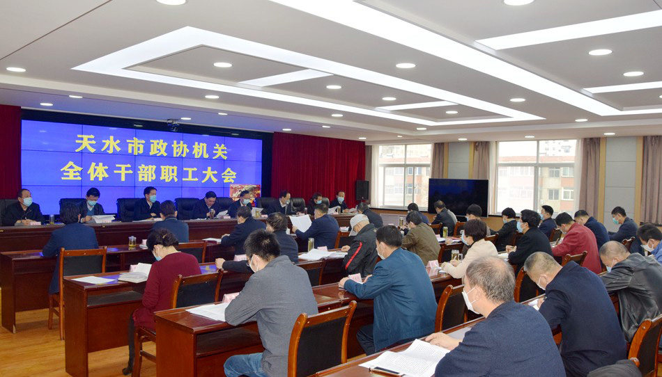 2月26日,天水市政协党组书记、主席赵卫东主持召开市政协机关全体干部职工大会。他强调,要认真贯彻落实习近平总书记重要讲话精神和中央决策部署,立足本职岗位,切实履职尽责,确保市政协全年各项工作任务有力有序推进,为全市疫情防控和经济社会发展作出应有贡献。