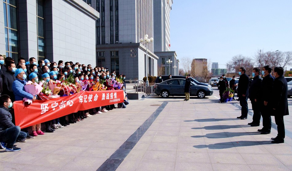 张建杰、逯克宗代表市委、市政府向医疗队全体队员表示崇高敬意和衷心感谢。希望医疗队员在鄂期间充分发挥专业优势,用精湛医术全力以赴救治患者,努力帮助湖北人民打赢疫情阻击战。要始终保持积极乐观的心态,勇担使命,履职尽责,做好自我防护,圆满完成各项任务。张建杰、逯克宗表示,天水380万人民始终是大家的坚强后盾,我们尽全力做好后勤保障工作,祝愿大家平平安安去、健健康康回。