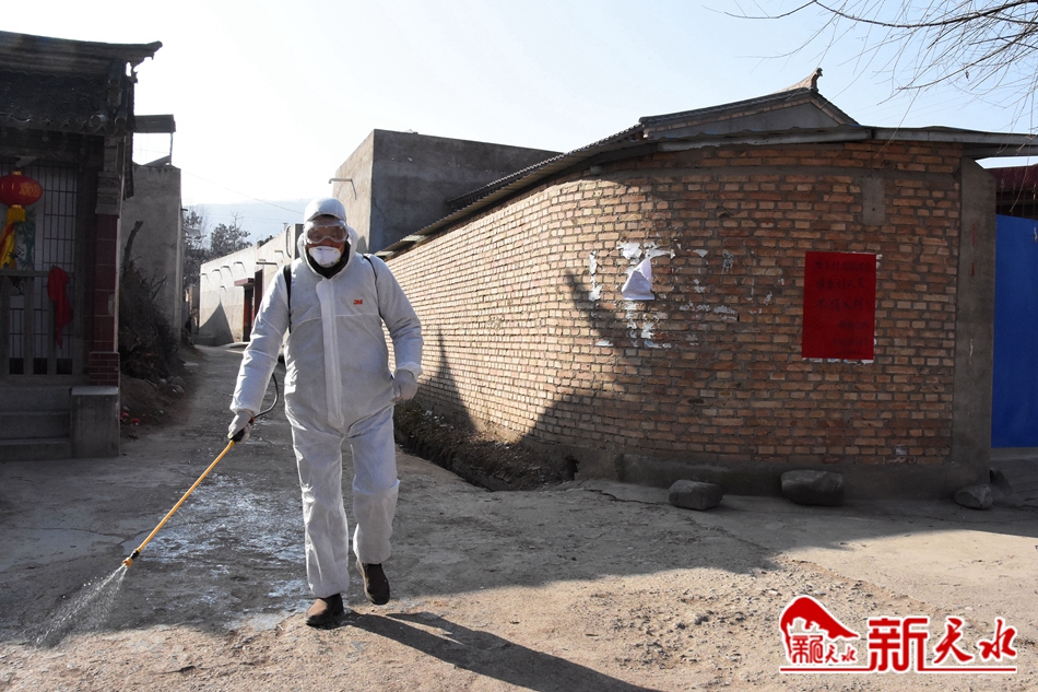 防疫人员对村子巷道进行消毒