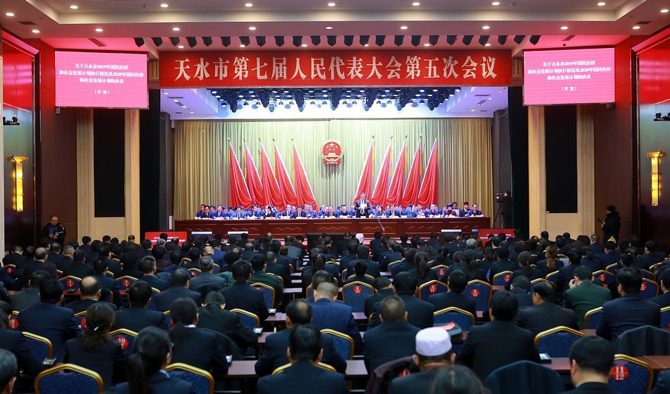1月19日,天水市第七届人民代表大会第五次会议圆满完成各项议程后,在天水宾馆胜利闭幕。