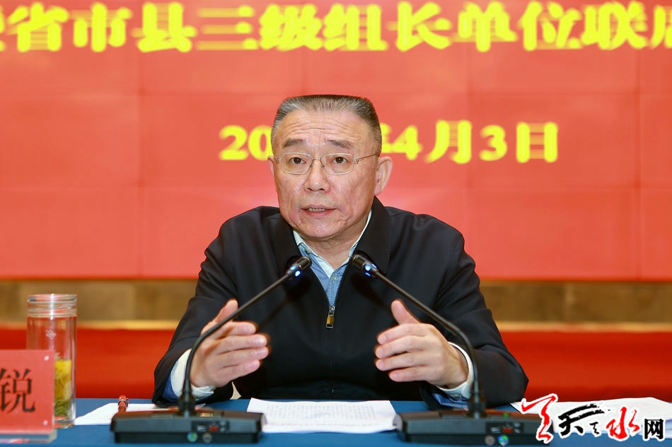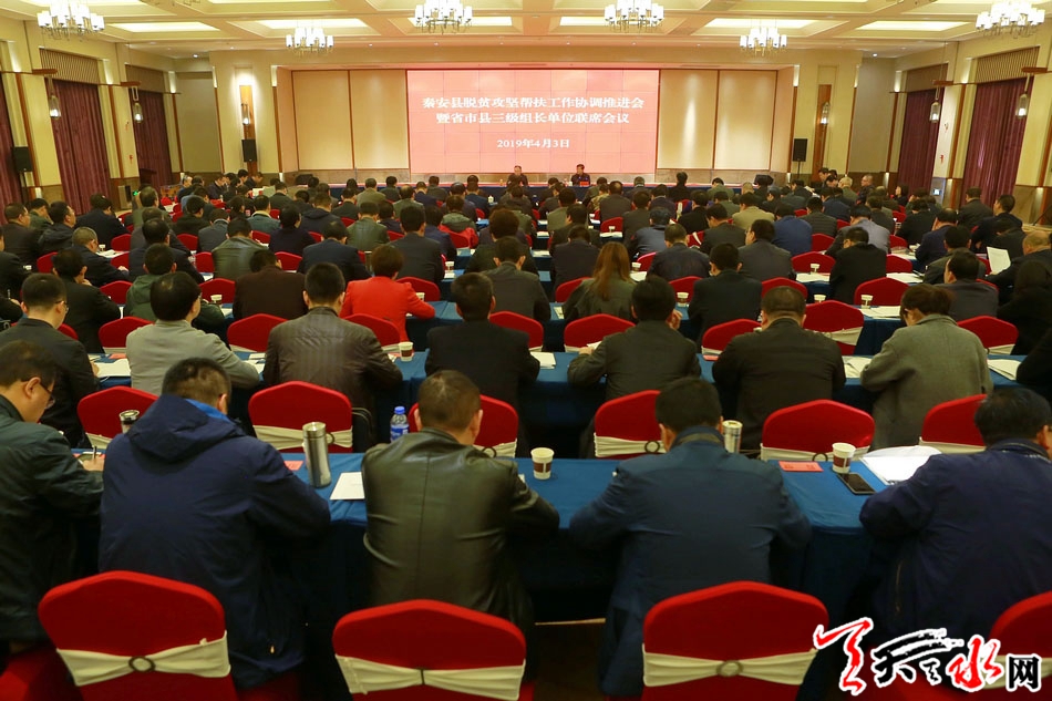 4月3日,秦安县脱贫攻坚协调推进会暨省市县三级组长单位联席会议召开。省政协副主席、天水市委书记王锐出席会议并讲话。他强调,秦安县和省、市各帮扶单位要认真学习贯彻习近平总书记在参加十三届全国人大二次会议甘肃代表团审议时的重要讲话精神,聚焦“两不愁三保障”目标,认真做实做好帮扶工作,确保秦安县整县脱贫摘帽如期完成。