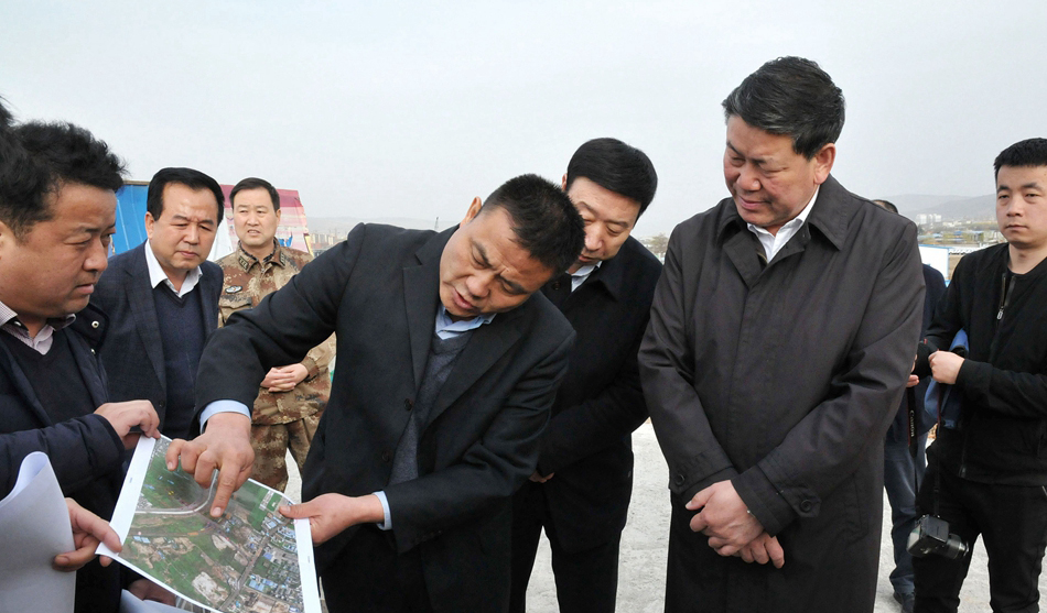 在项目工程建设工地,王军听取工程建设及有关方面负责人就工程建设规划、建设进度等情况的汇报,详细了解并现场协调解决工程建设中存在的矛盾和问题。