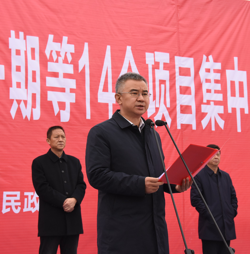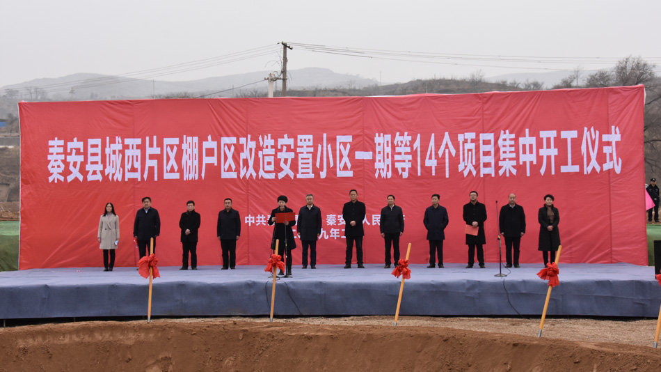 2月28日上午,秦安县举行城西片区棚户区改造安置小区等十四个建设项目集中开工仪式。天水市委常委、常务副市长赵四辈宣布项目开工并致辞。