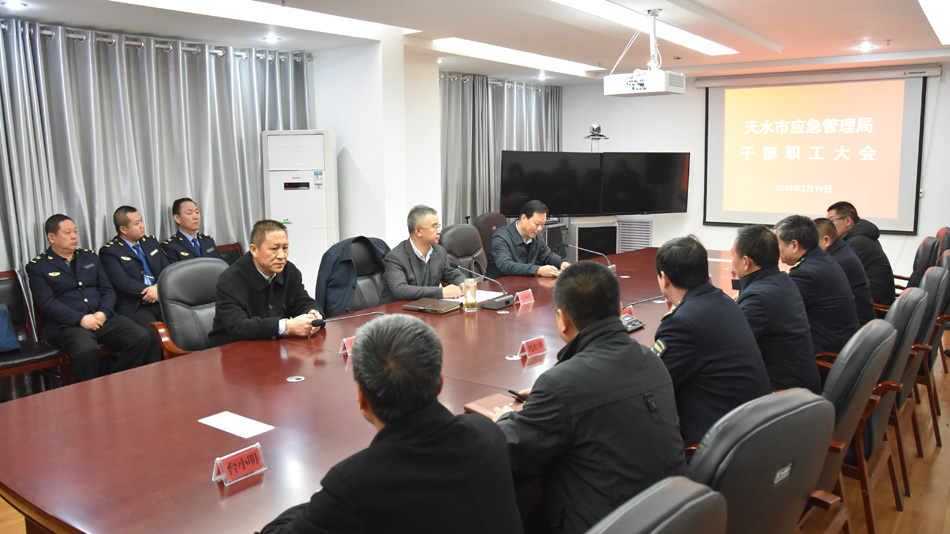 2月19日下午,新组建的天水市应急管理局举行干部职工大会和挂牌仪式,市委常委、常务副市长赵四辈出席会议并揭牌。