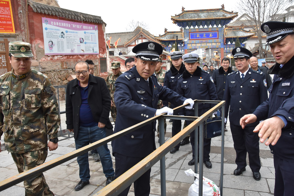 2月11日,副市长、市公安局局长马瑛带领市直及驻市有关部门负责人,对玉泉观春节文化庙会消防安全及安全保卫工作进行检查。马瑛强调,市、区两级和相关部门要进一步强化安全意识,靠实责任,强化措施,各尽其职,确保"上九"春节文化庙会活动安全有序进行。