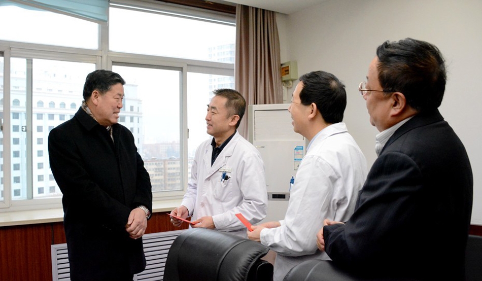 1月24日上午,市委副书记、市长王军带领市直有关部门负责人来到天水市第一人民医院,看望慰问联系的齐胤尊、王根绪两位专家,为他们送去新春祝福,并通过他们向全市医务工作者致以节日的问候。