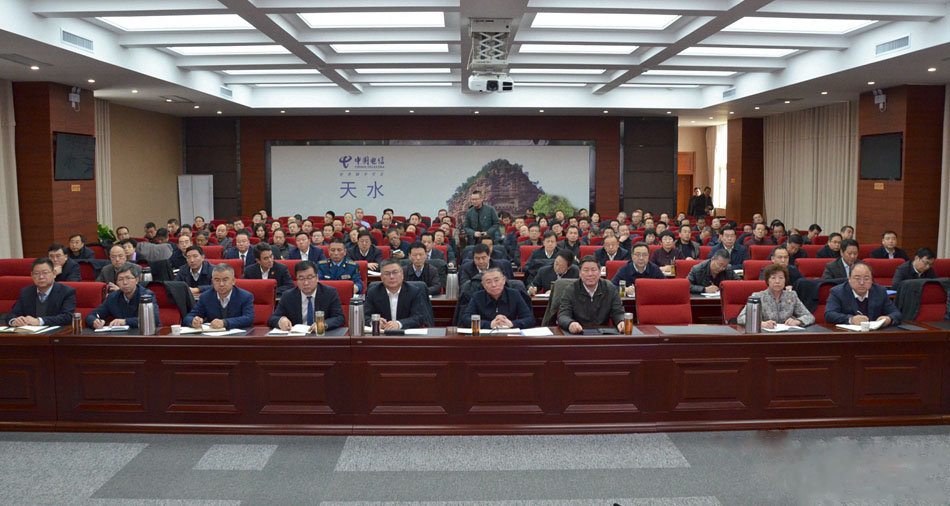 天水市领导王锐、王军、蒲军、王正茂、温利平、赵四辈、宫辉、刘骁、王洪义、张建杰、刘天波、宋建平、唐宏伟、张智明、马忠福、张发魁及各县区和市直各有关部门负责同志在天水分会场收听收看了会议。
