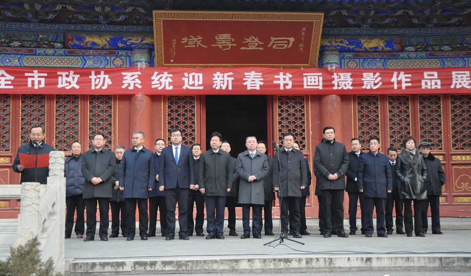市人大常委会主任、市委秘书长蒋晓强,市委副书记赵卫东,市委常委、组织部长王正茂,市委常委、统战部长温利平、市委常委、常务副市长赵四辈,市委常委、宣传部长张建杰,市人大副主任蒲朝晖、宋建平,市政府副市长逯克宗,市政协副主席马百龄、苏定武、郭明兴、唐宏伟、屈光平、张智明,市政协秘书长王小林,市政协党组成员贾忠慧以及市政协退休老领导王志荣、王凤保出席开展仪式。开展仪式由市政协副主席王振宇主持。市政协原副主席、市政协书画研究院常务副院长王凤保介绍了展览筹备情况。
